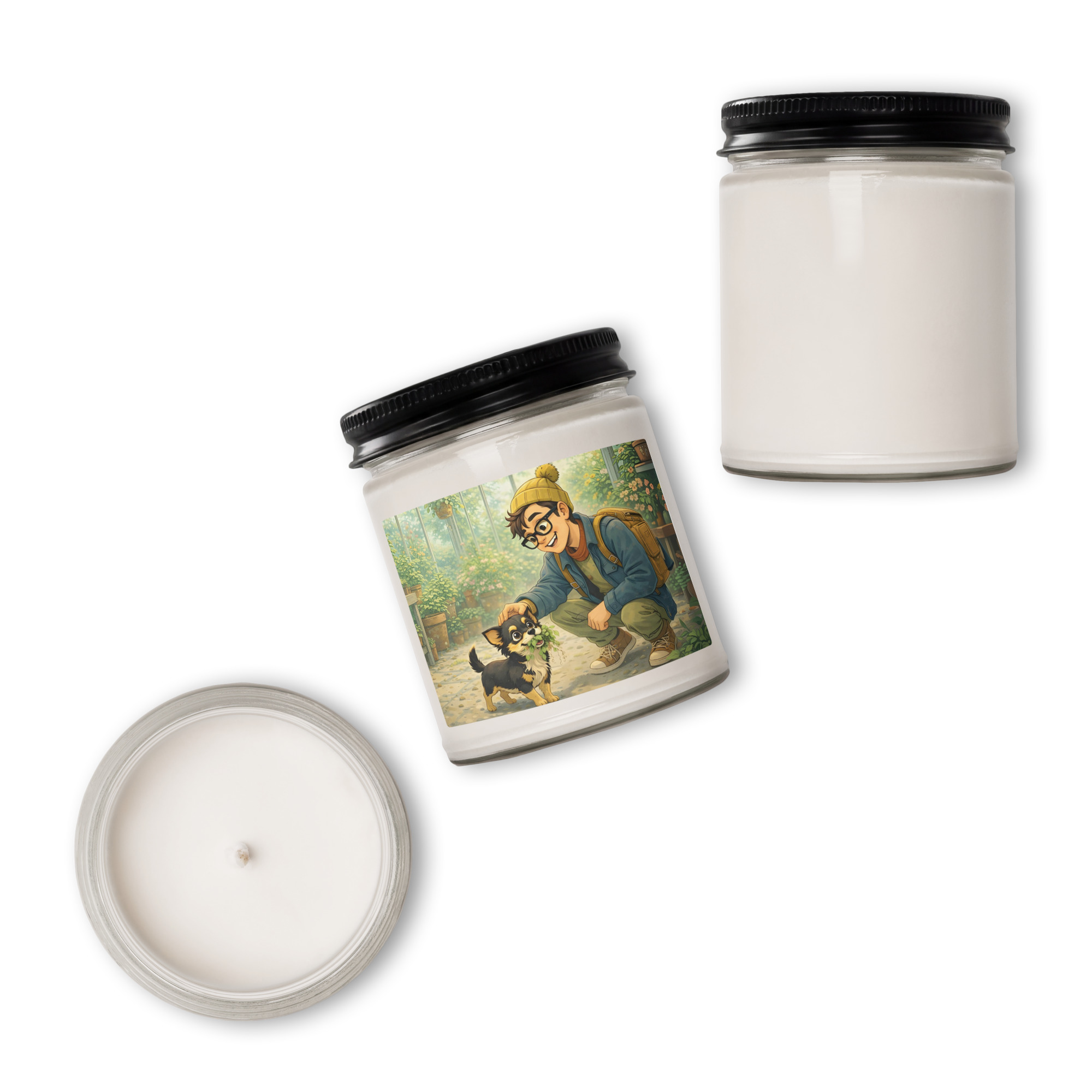 Light this soy candle and let its gentle glow bring warmth into your space. Featuring artwork inspired by Tobi’s greenhouse adventures, it adds comfort and calm to any room. The soft ambiance creates the perfect setting for reading, relaxing, or reflecting.
